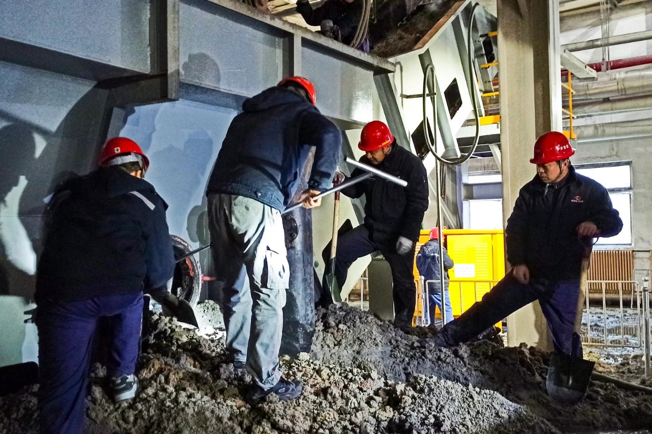 紧急关头,清水川项目部立即出动灰硫二班及项目部全体管理人员投入清渣工作。零下十几度的室外冷风刺骨,室内却是一片热火朝天的大干场面,铁锨、耙子、捅条,“十八般”清渣工具全部排上用场,䦆挖、手刨、水冲,能想的办法都用上,大家干得满脸灰尘、汗流浃背,却一刻也不停歇。