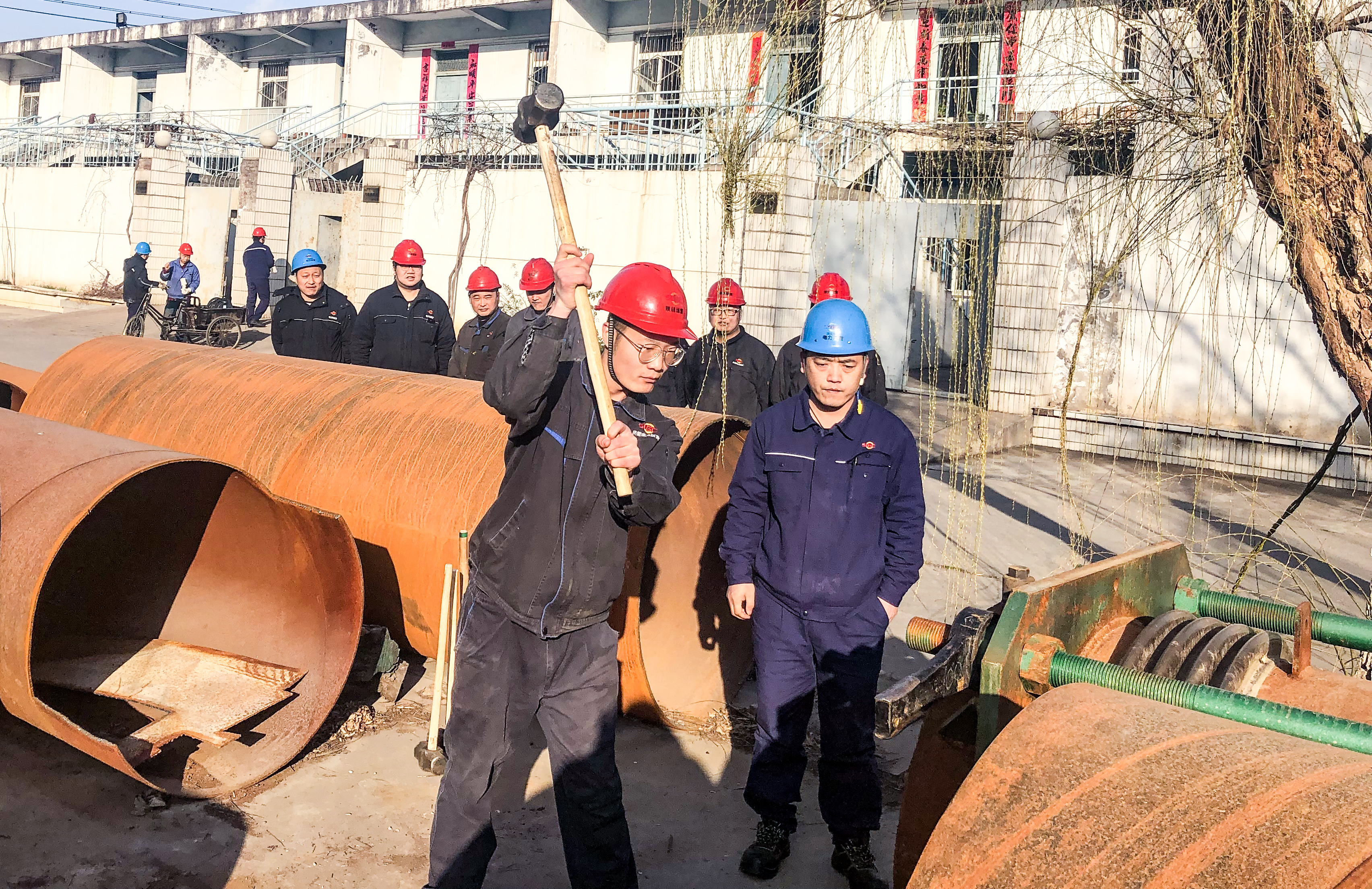 “为确保安全,工作期间要徒手抡大锤,严禁戴手套操作!”2月19日,大年初八,节后上班第二天,渭河项目部汽机专业培训场地上春寒料峭,一场青工抡大锤技能培训却正热火朝天地进行着。